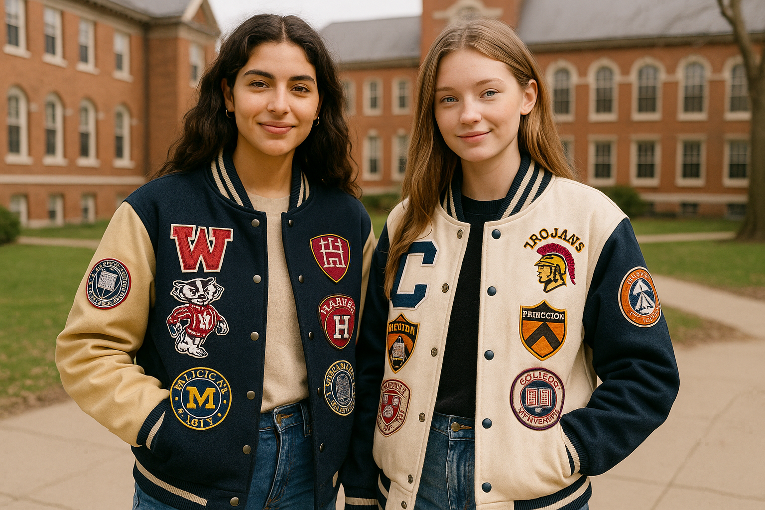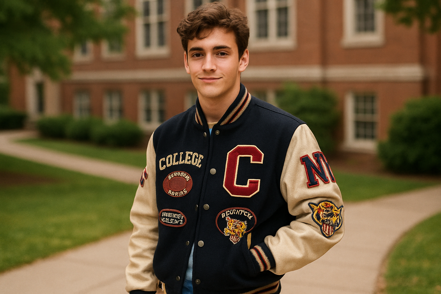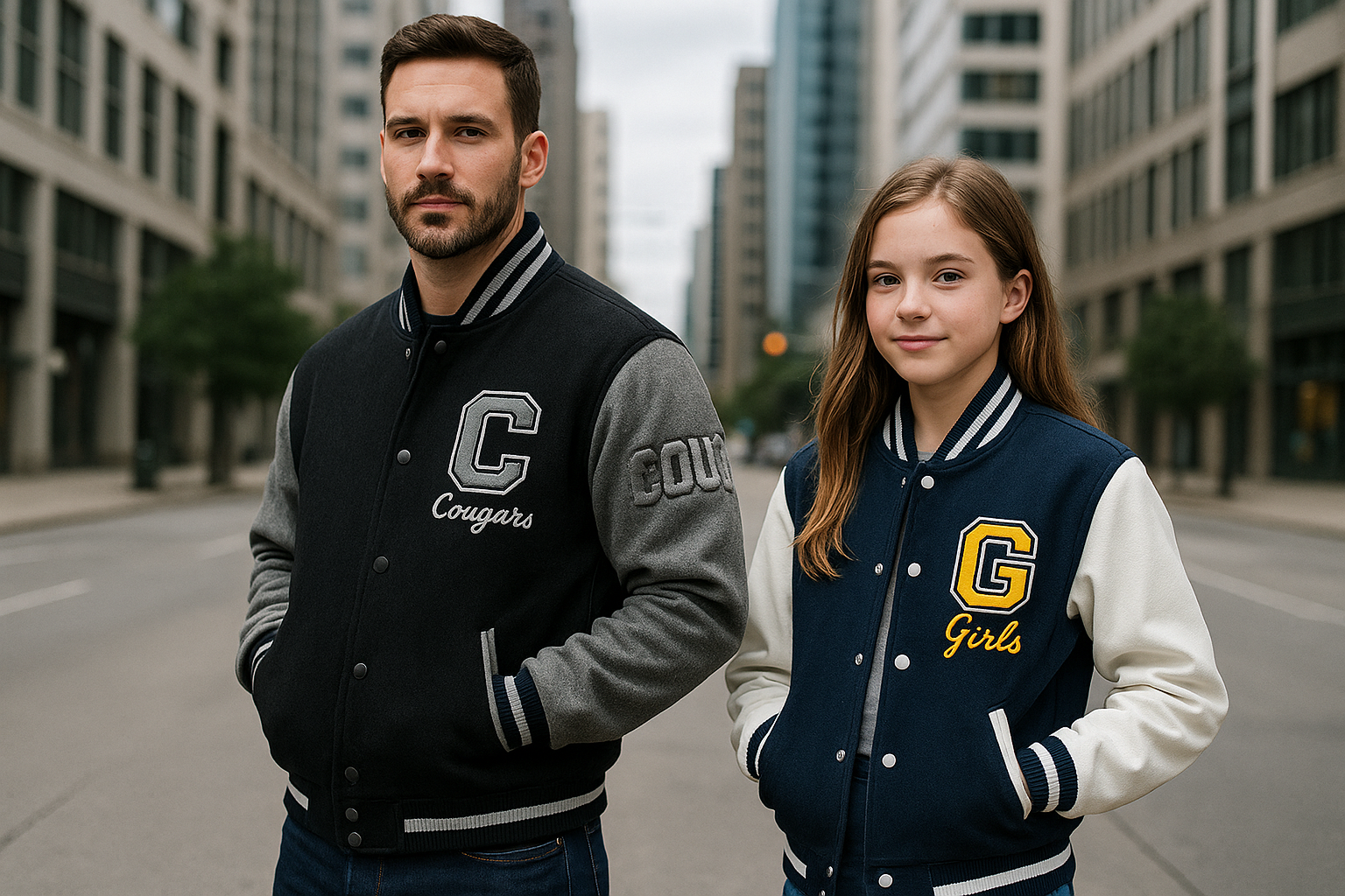 Classic Varsity Letterman Jacket Navy Blue Wool with White Genuine Leather Sleeves and trims